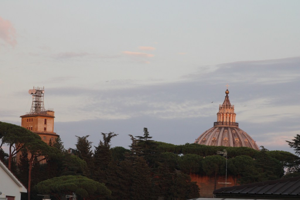 Our Airbnb apartment complex. Very nice, very small parking lot.View of the Sistine Chapel (on the right) from our apartment window.